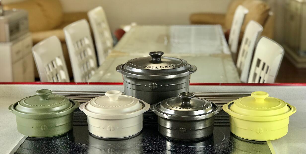 天然鉱石や良質な土から作られていて、煮込み料理はもちろん、焼き芋、グリル、スモークなど、なんにでも使える万能セラポットです♡楽天やキママクラブのサイトなどで購入できます。我が家ではモスグリーンを愛用してます♪